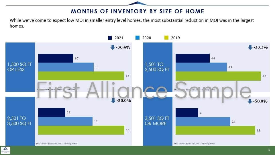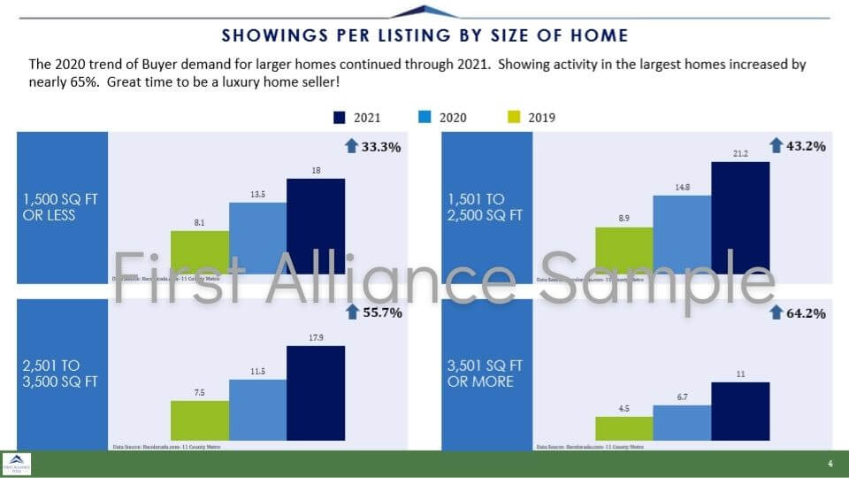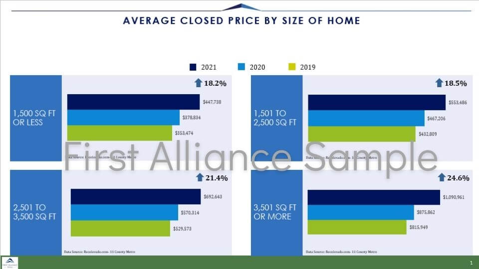 The following charts show how the largest subset of homes outpaced every other segment in several metrics during 2021. The gains from 2019 are even more staggering.