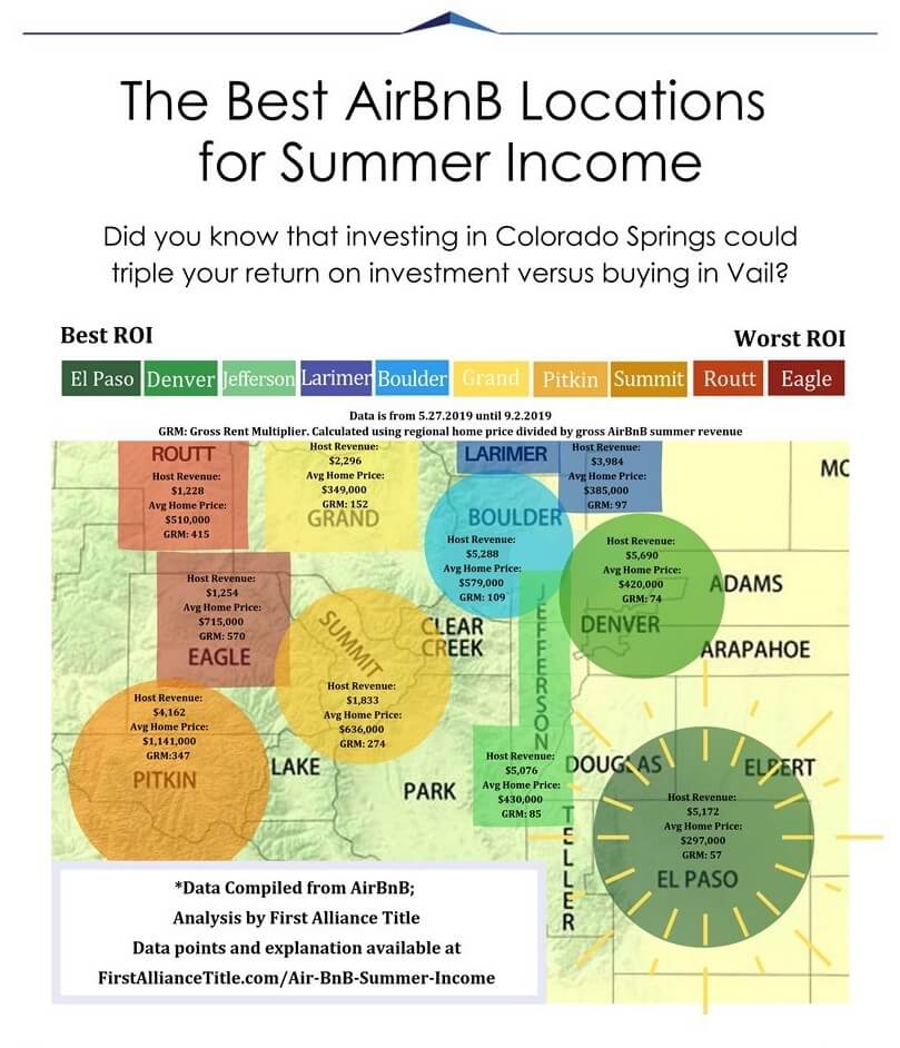 Sometimes making smart investments can make all the difference. It was in this spirit that the data analysts at First Alliance Title sat down and calculated just exactly WHERE is the top Front Range/Mountain county for ROI on Airbnb properties.
