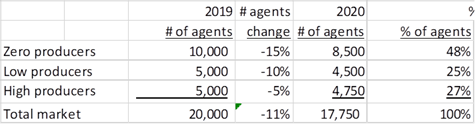 Remember that 50% of agents sell 0 deals a year, about 25% sell 1-3, and 25% sell 4+.