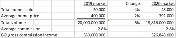 As outlined at the top, imagine the number of units goes down 4%, and the price goes down 2%. Total market GCI goes down about -6%