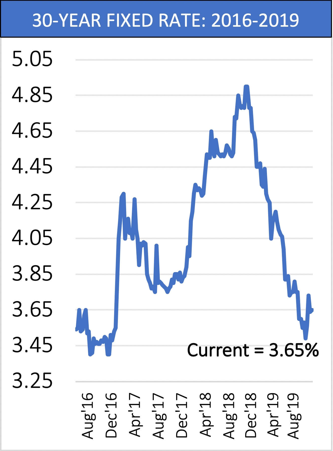 When you’re trading up the ability to sell high and buy low are two excellent factors. Completing the trifecta for trade up buyers is interest rates. Interest rates today at about 1% less than they were a year ago. They haven’t been this low since 2016. This 1% difference in interest rates translates to a lot of buying power. With a $600,000 loan that 1% can save you $350 per month!