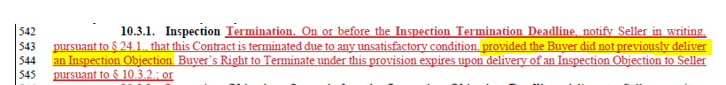 Under the 2022 form, if you have an inspection objection deadline and you choose to object, you can’t then terminate under inspection termination. Instead, you must give the seller a chance to resolve.