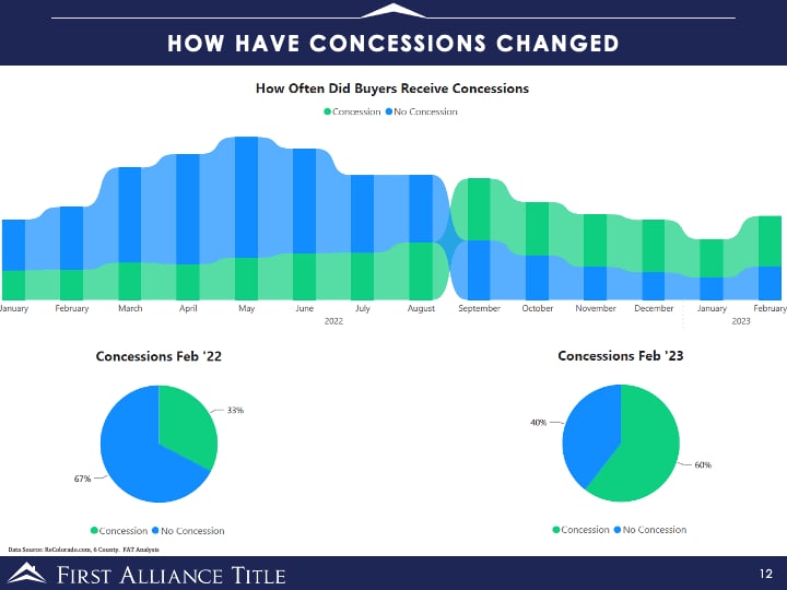 Secondly, if choose to list your home be prepared to pay some concessions for inspection items or buyer loan costs. The percentage of closings with concessions has grown from 33% in 2022 to 60% in 2023.