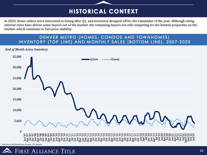 To put this into historical context, take a look at how drastically our housing supply has been reduced since 2007, despite a growing population. If active listings stay at the current low levels, prices will likely remain stable this year.