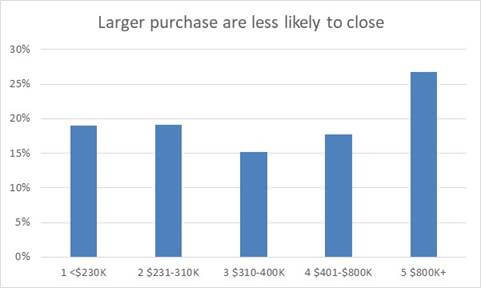 Large Purchase Are Less Likely to Close